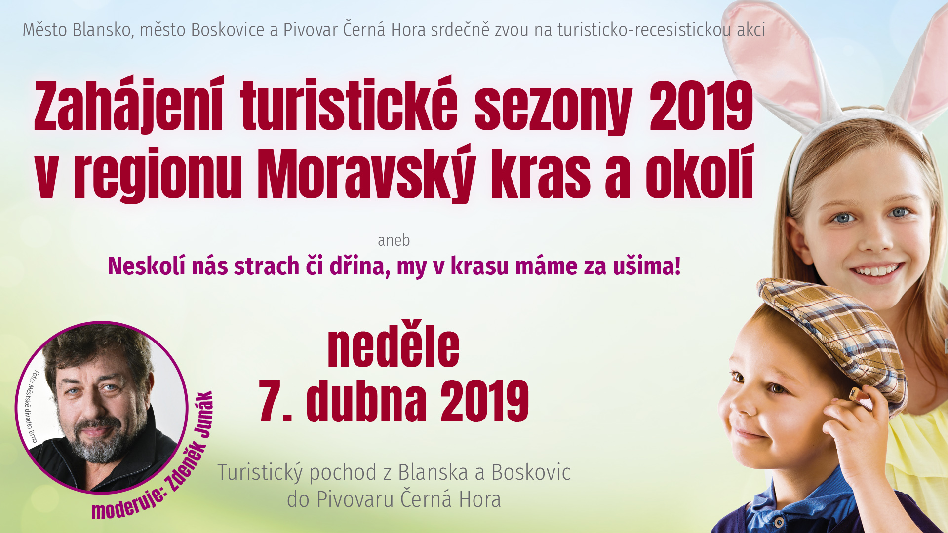 Nazujte turistické boty, vytáhněte trekkingové hole a vydejte se s námi na turistický pochod do Černé Hory! Města Blansko a Boskovice zde v neděli 7. dubna 2019 již potřinácté společně slavnostně zahájí turistickou sezonu v Moravském krasu a okolí.
